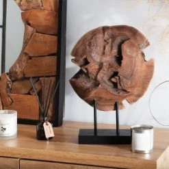 Beliani Statuettes Et Figurines Statuette Décorative Dorée Sur Socle Noir 34 Cm