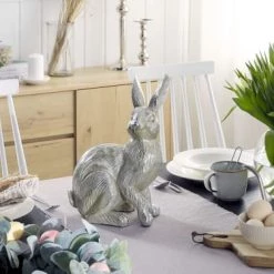 Beliani Statuettes Et Figurines Figurine Décorative Lapin Argenté 35 Cm