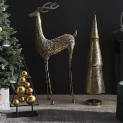 Beliani Statuettes Et Figurines Statuette Déco Renne Doré 126 Cm