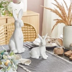 Beliani Statuettes Et Figurines Figurine Décorative Lapin En Céramique Blanc 21 Cm