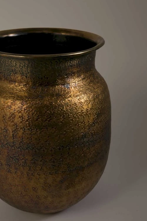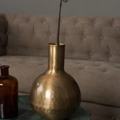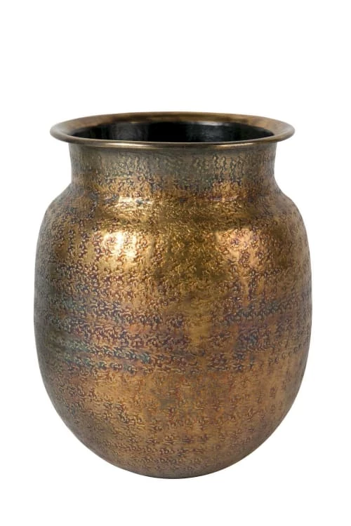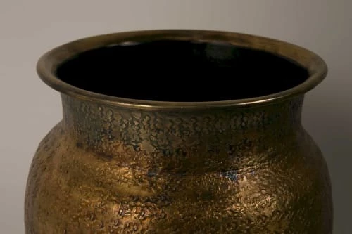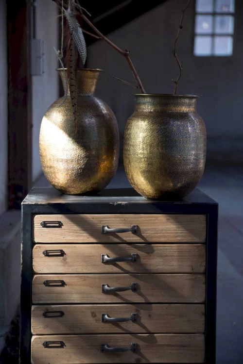 Vase déco BahaPlus d’informationsAluminium, plaqué laiton antiqueNote : Ces vases sont pour la décoration seulement.Dimensions : 24×30 cm (Ø x H)Parfois les vases sont si joliment beaux par eux-mêmes qu’il n’y a pas besoin de fleurs ou de plantes. C’est le cas de notre vase Baha. Tous les deux ont une finition en laiton antique et sont finement embellis avec des décorations estampées. Disposez-les en groupes sur une table d’appoint et profitez de l’ambiance orientale qu’ils dégagent. Baha et Bahir sont des décorations d’intérieur et ne sont donc pas étanches.Il suffit d’essuyer doucement avec un chiffon de nettoyage non pelucheux pour maintenir la finition. N’utilisez pas de produits de nettoyage abrasifs ou de vernis en aérosol sur ce vase, car ils altèrent le fini du vase. accessoires tels que les fleurs sèches décoratives, qui sont mis sur elle pour la beauté de la maison, doivent être nettoyés régulièrement pour éviter l’ombre.vase va résister à la plupart des températures dans la maison moderne. Toutefois, il doit être placé aussi loin que possible des radiateurs ou d’autres sources de chaleur directe.