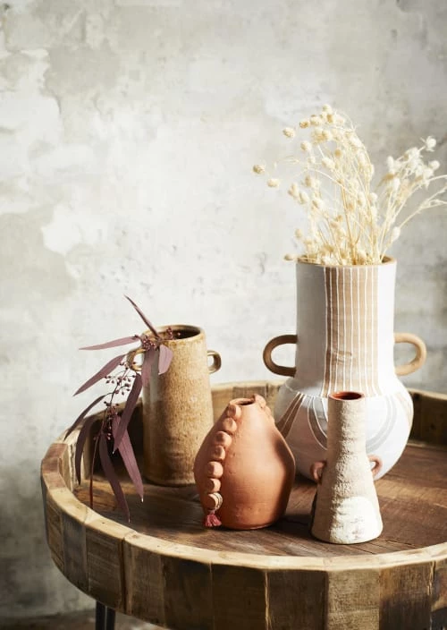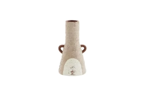 Magnifique vase en terre cuire fabriqué artisanalement. Pour accueillir vos fleurs dans votre séjour ou simplement comme objet de décoration, le vase en terre cuite Orela est parfait !Modèle unique fait à la main, il saura vous séduire avec ses couleurs naturelles (taupe et terracotta) rehaussées d’une touche de bleu.