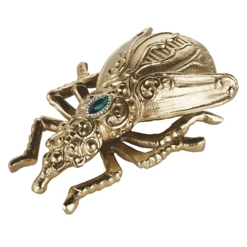 Maisons Du Monde Statuettes Et Figurines Déco à Poser Insecte En Métal Doré Et Pierre Verte H21