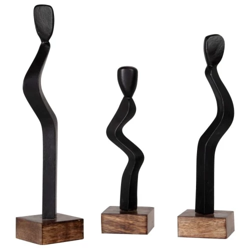 Maisons Du Monde Statuettes Et Figurines Statuettes En Bois De Manguier Et Métal Noir (x3) H19