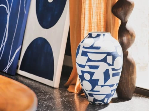 Sur votre buffet ou votre table, le vase SACRAMENTO sera une touche vintage remarquable et remarquée ! Réalisé en argile, ce vase blanc aux motifs bleus abstraits sera parfait, que ce soit pour mettre en valeur des fleurs fraîches ou un bouquet de fleurs séchées…