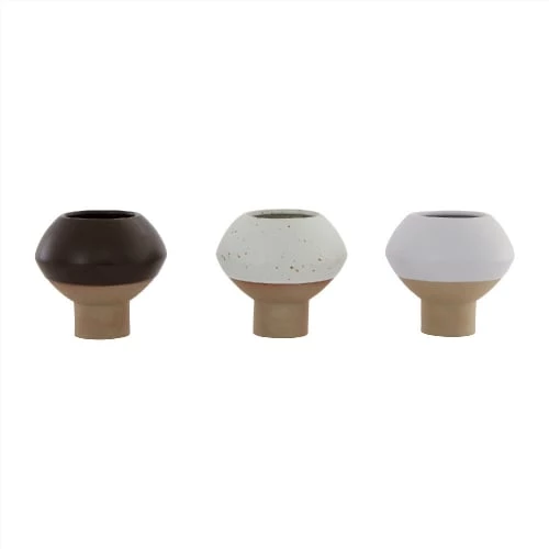 La série Hagi s’inspire de la poterie japonaise Hagi, qui se caractérise par sa texture terreuse. Les formes organiques donnent un sentiment de calme et d’équilibre. Le mini vase Hagi est parfait pour vos fleurs préférées ou pour ranger des accessoires dans la cuisine ou le bureau. Tous les produits de la série Hagi sont fabriqués à 100% en grès et sont faits à la main, ce qui signifie que chaque produit est unique.Pour le nettoyage, il est recommandé de sécher avec un chiffon humide.Qualité : 100% grèsDimensions : Diamètre 13 x H12 cm