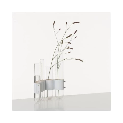 Le vase Forget-me-not est composé de 5 tubes en verre de tailles différentes et maintenus entre eux par un lien de cuir. Il est parfait pour accueillir petites et grandes fleurs. Il permet une mise en scène poétique et personnelle de vos bouquets. Dimensions : 11 x 11 x 26cm Matière : Verre et cuir