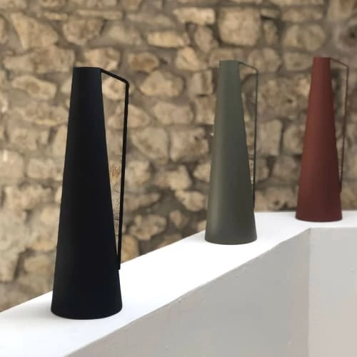 Une touche contemporaine s’invite dans votre déco avec ce vase conique de la collection Tosca signée Passage Vernet. Une forme très épurée, toute en finesse, avec sa anse ultra minimaliste. On aime sa finition mate, sur un métal grainé comme sablé. Ce vase en métal est proposé en 3 coloris très actuels : noir, rouge terracotta et vert olive. Découvrez dans la collection Tosca les vases format pot à lait ainsi que les tables basses à pied compas.