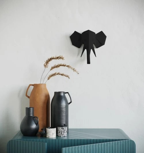 Il paraît qu’un éléphant, ça trompe énormément, mais pas celui-ci ! Le trophée décoratif mural éléphant noir origami vous garantit, au contraire, d’avoir forcément raison de l’accrocher au mur de la maison. Dessinée en réplique d’un pliage origami, réalisée dans une résine composite noire élégante, cette statuette éléphant est parfaite pour apporter style et chic dans un loft épuré ou dans un intérieur bohème.