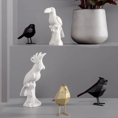 Maisons Du Monde Statuettes Et Figurines Statuette Paon Doré, Plumes Et Perchoir Noirs