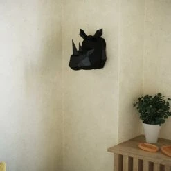 Potiron Paris Statuettes Et Figurines Trophée Décoratif Mural Rhinocéros Noir En Polyrésine