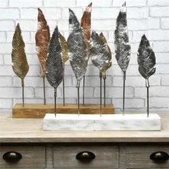 Sensei Maison Statuettes Et Figurines Feuilles En Métal Sur Socle H 52 Cm Blanc 50x8x52 Cm