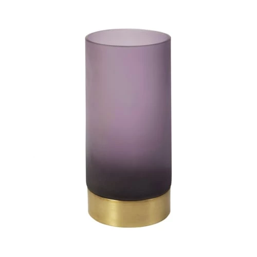 Vase RING en verre opaque mauve avec une baguedorée en base. Ce vase chic aux couleurs sobres et élégantes s’intègreparfaitement dans une décoration aux couleurs douces. Le vase RING est fait pour recevoir des bouquets et compositions de plus de 15 cm de diamètre. Existe en deux tailles.