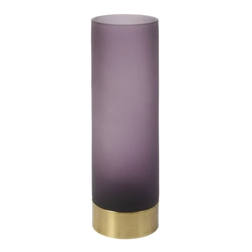 Vase RING en verre opaque mauve avec une baguedorée en base. Ce vase chic aux couleurs sobres et élégantes s’intègreparfaitement dans une décoration aux couleurs douces. Le vase RING est fait pour recevoir des bouquets et compositions de plus de 15 cm de diamètre. Existe en deux tailles.