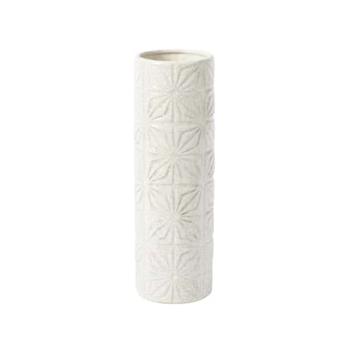 Vasecylindrique en céramique à motifs carreaux de ciment blanc.