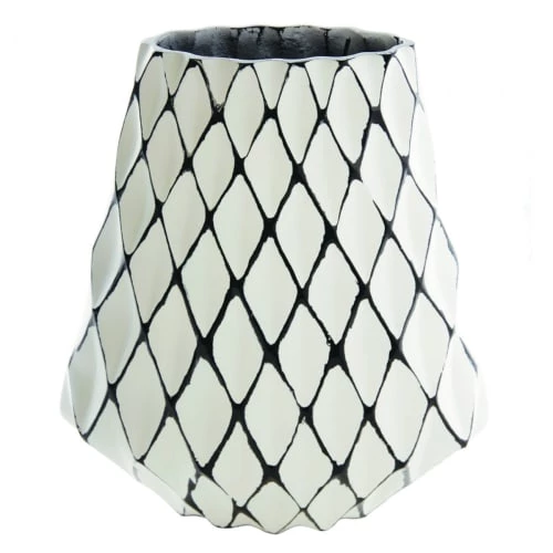 Vase Tartan en métal blanc et motifs relief noirs. Ce joli vase blanc au motif de losanges graphiques sera idéal pour mettre à vos plus beaux bouquets ou décorer votre pièce grâce à son design tendance. Existe en deux tailles.