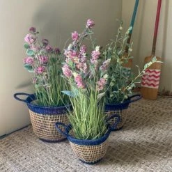 Pirouette Paris Statuettes Et Figurines Set De 3 Paniers Naturel Et Bleu En Jonc De Mer